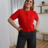 Cuenta con cuello vuelto, cierres frontales con botones grandes y bolsillos laterales amplios. Los puños vueltos con acabado de borreguito visible.