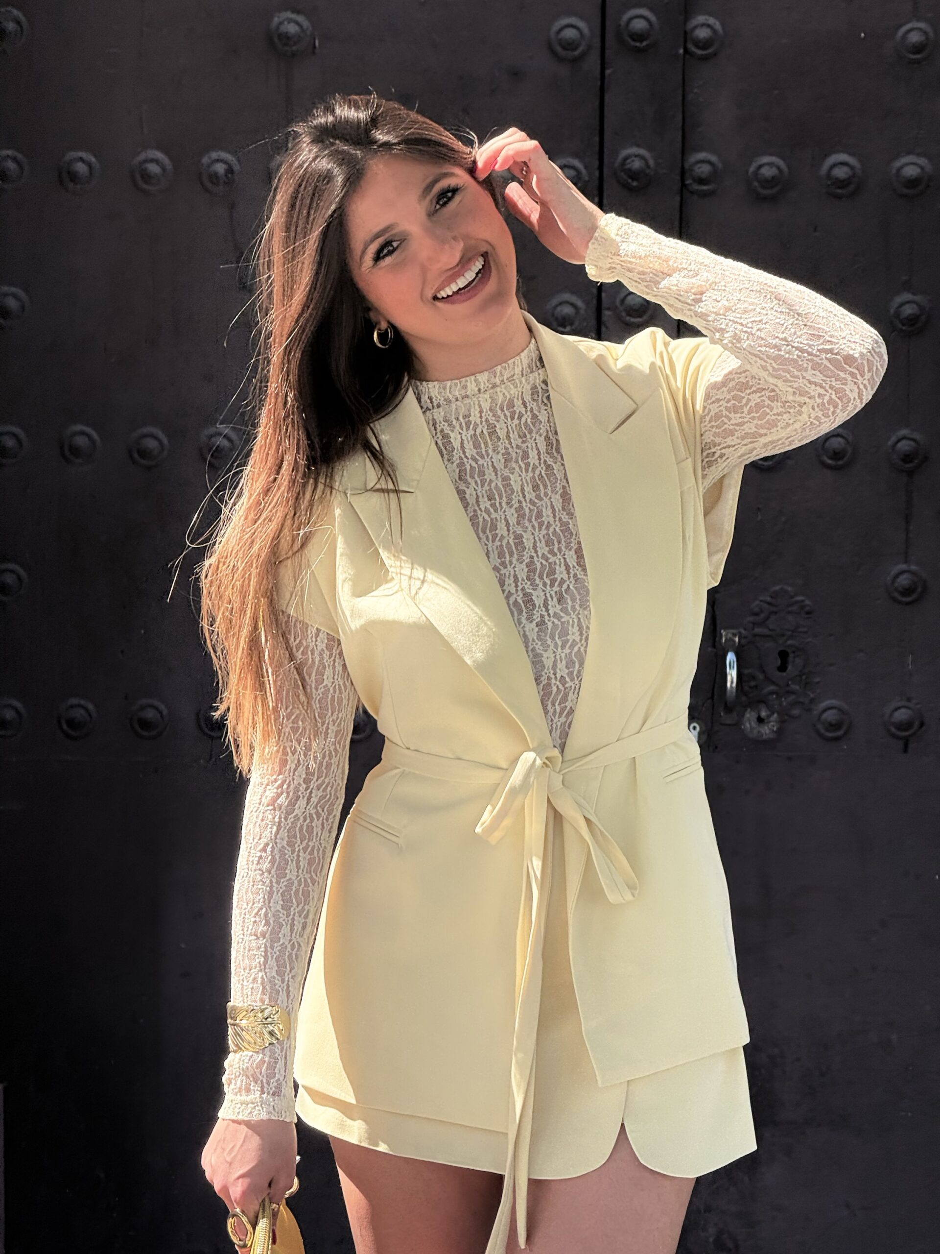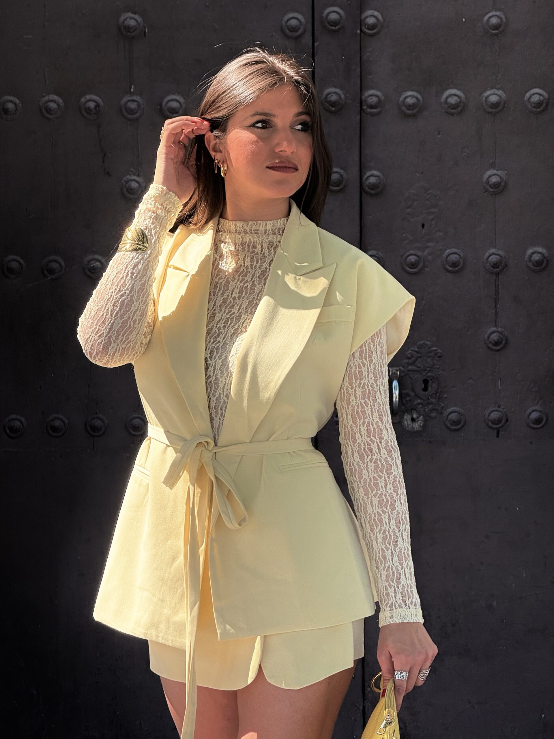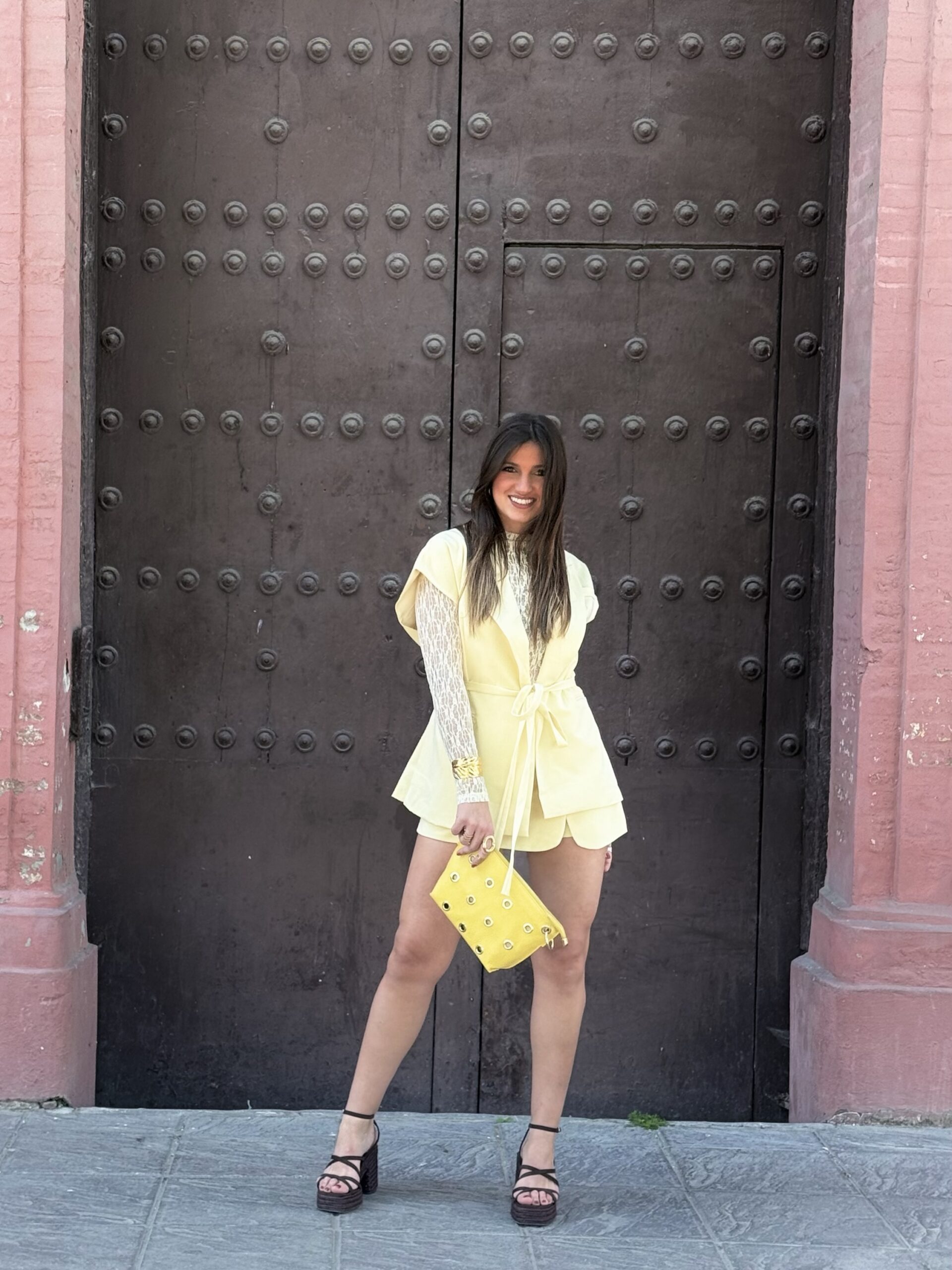 Conjunto de falda pantalón en color amarillo con chalequillo