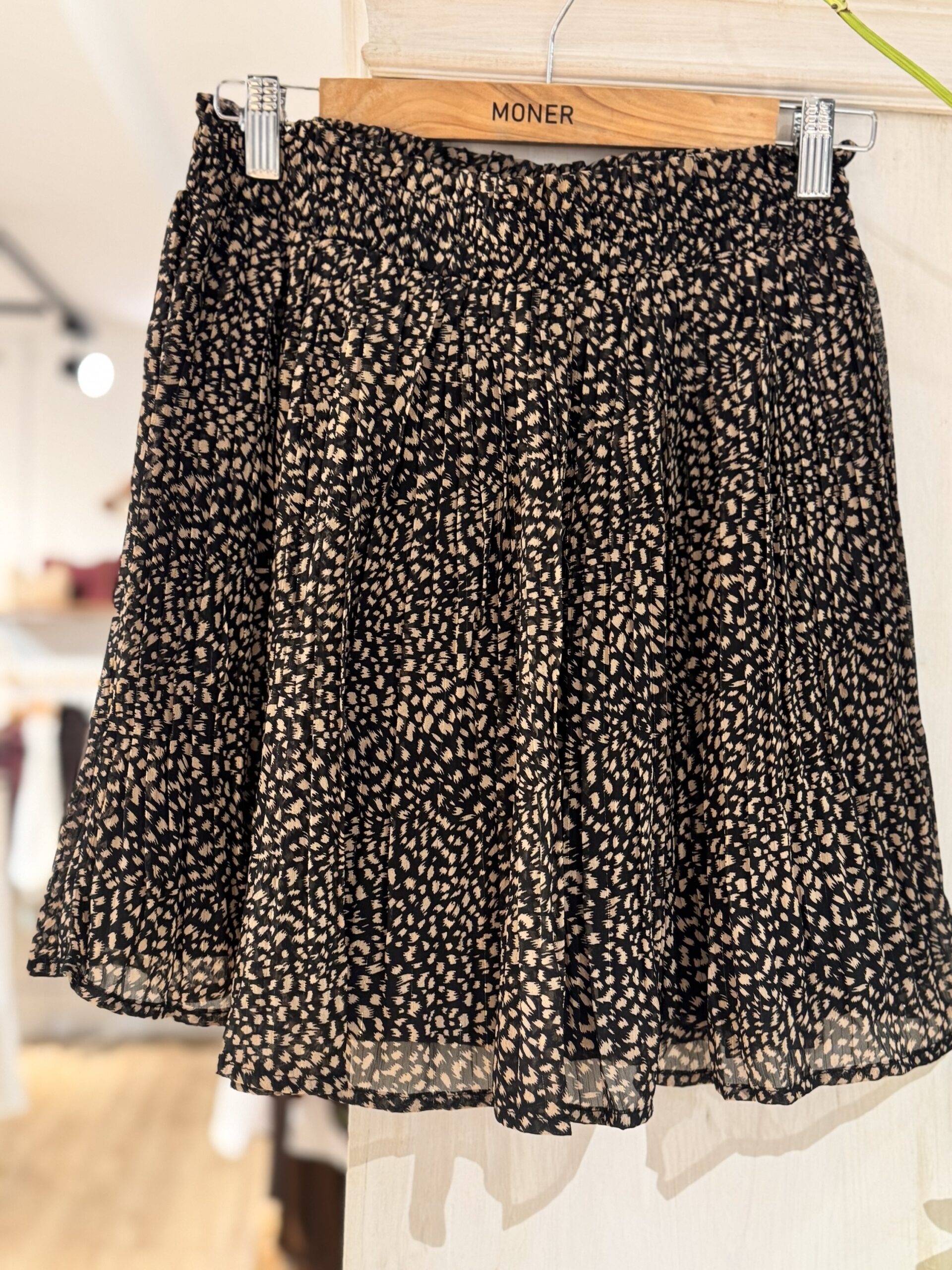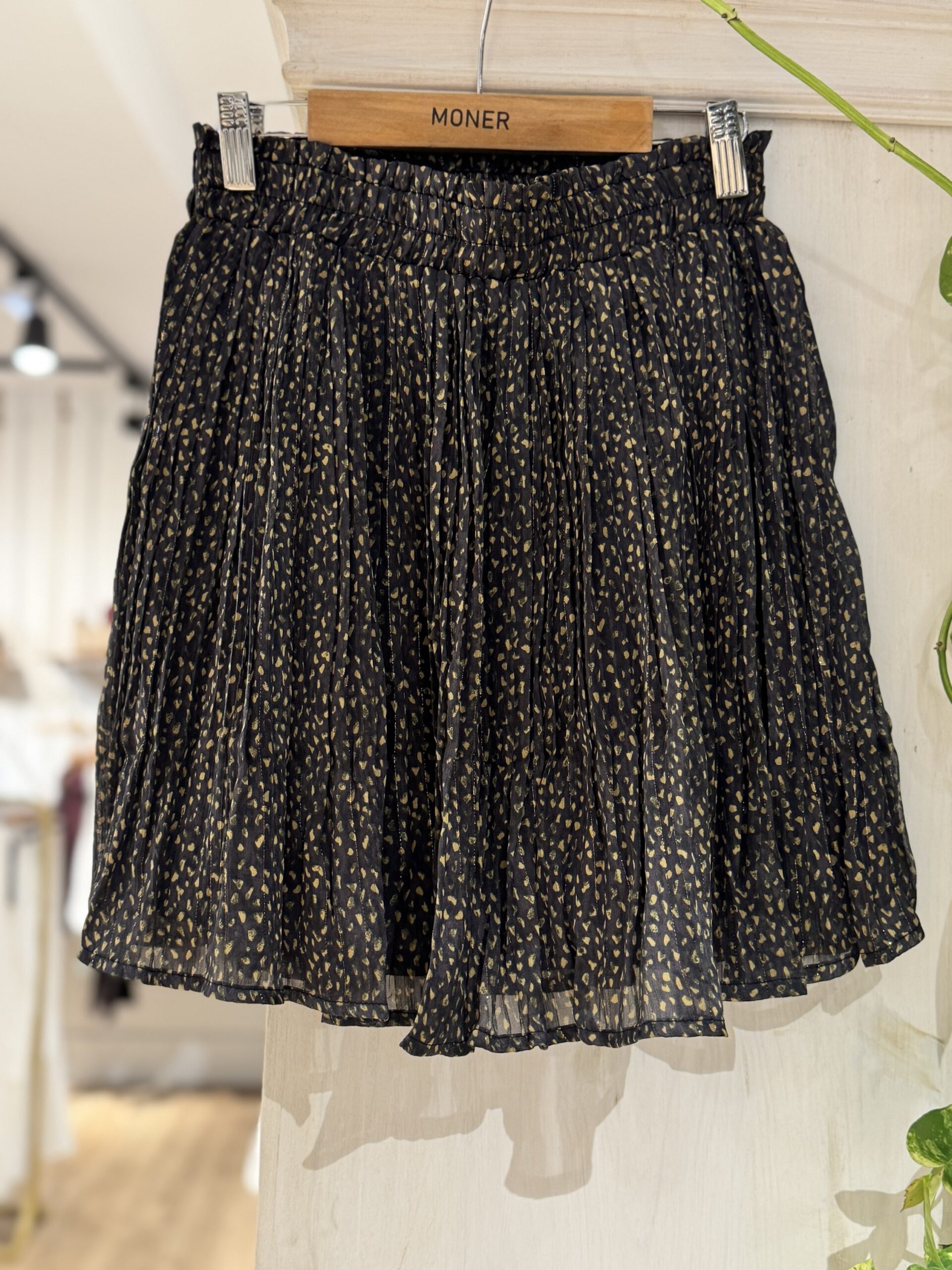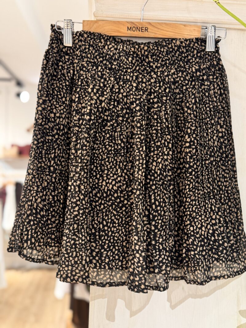 Falda corta de pliegues estampada. Cinturilla elástica.