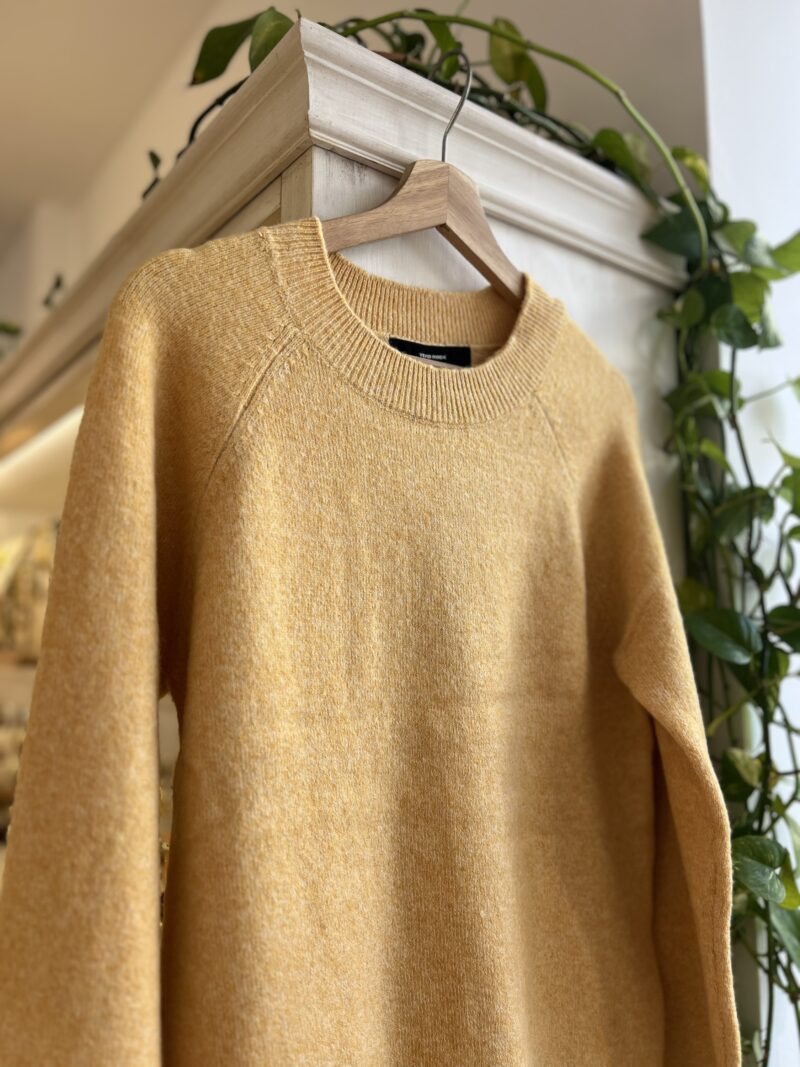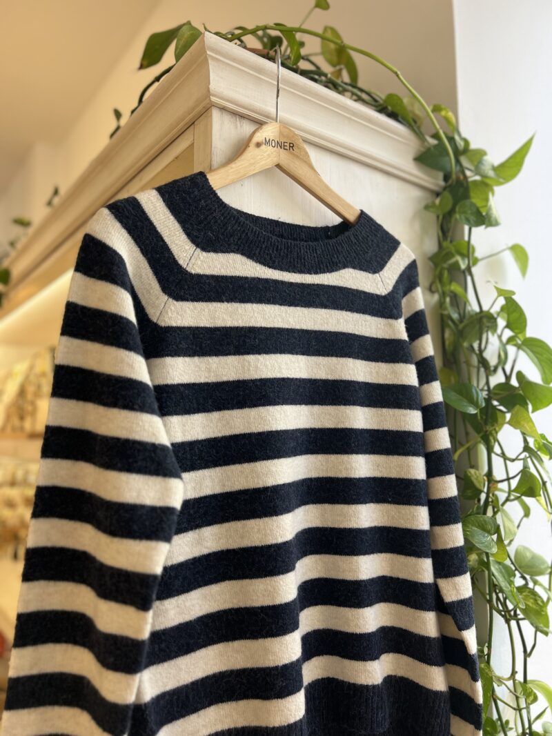 Jersey de lana fina con cuello a la caja. Corte recto y de manga larga.