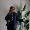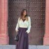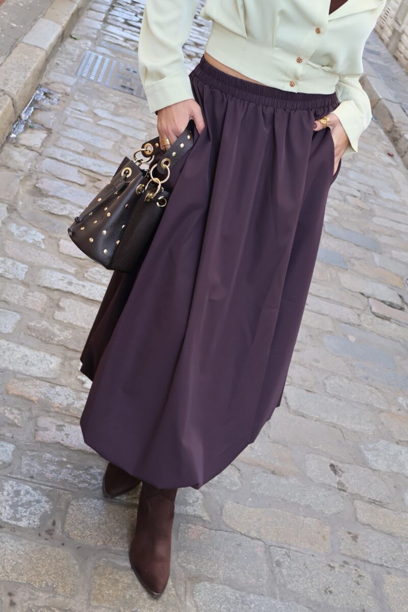 Pantalón estilo balloon con estampado de vaca. Cierre con botón y cremallera.