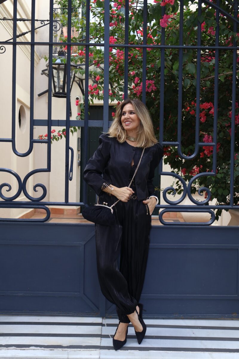 Pantalón bombacho de corte holgado con tejido de brillo. Cinturilla elástica. Dos bolsillos delanteros. Bajo con goma elástica.