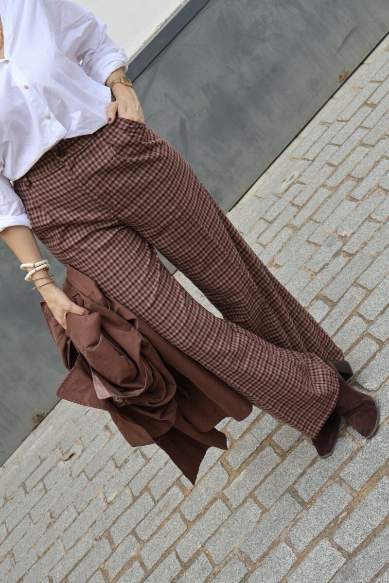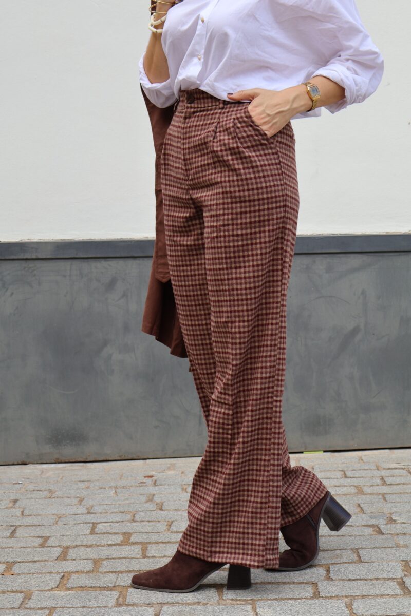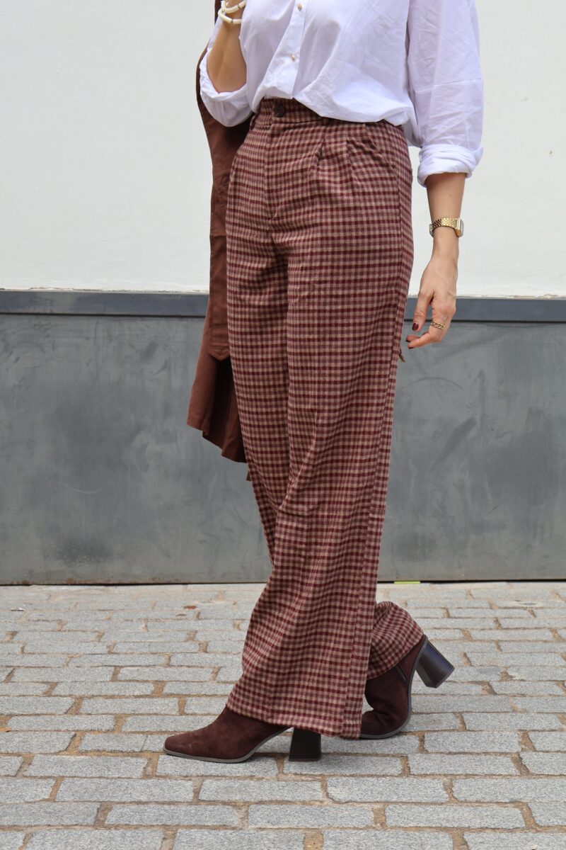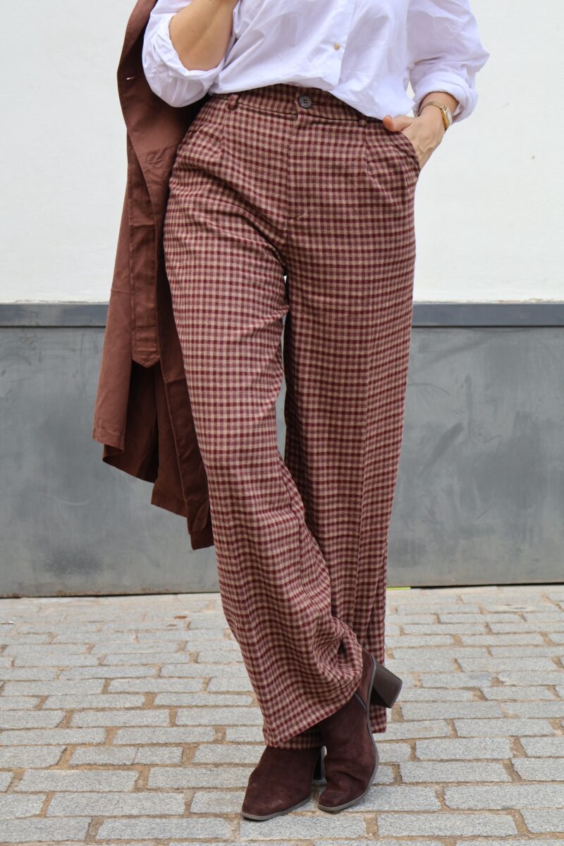 Pantalon vichy burdeos