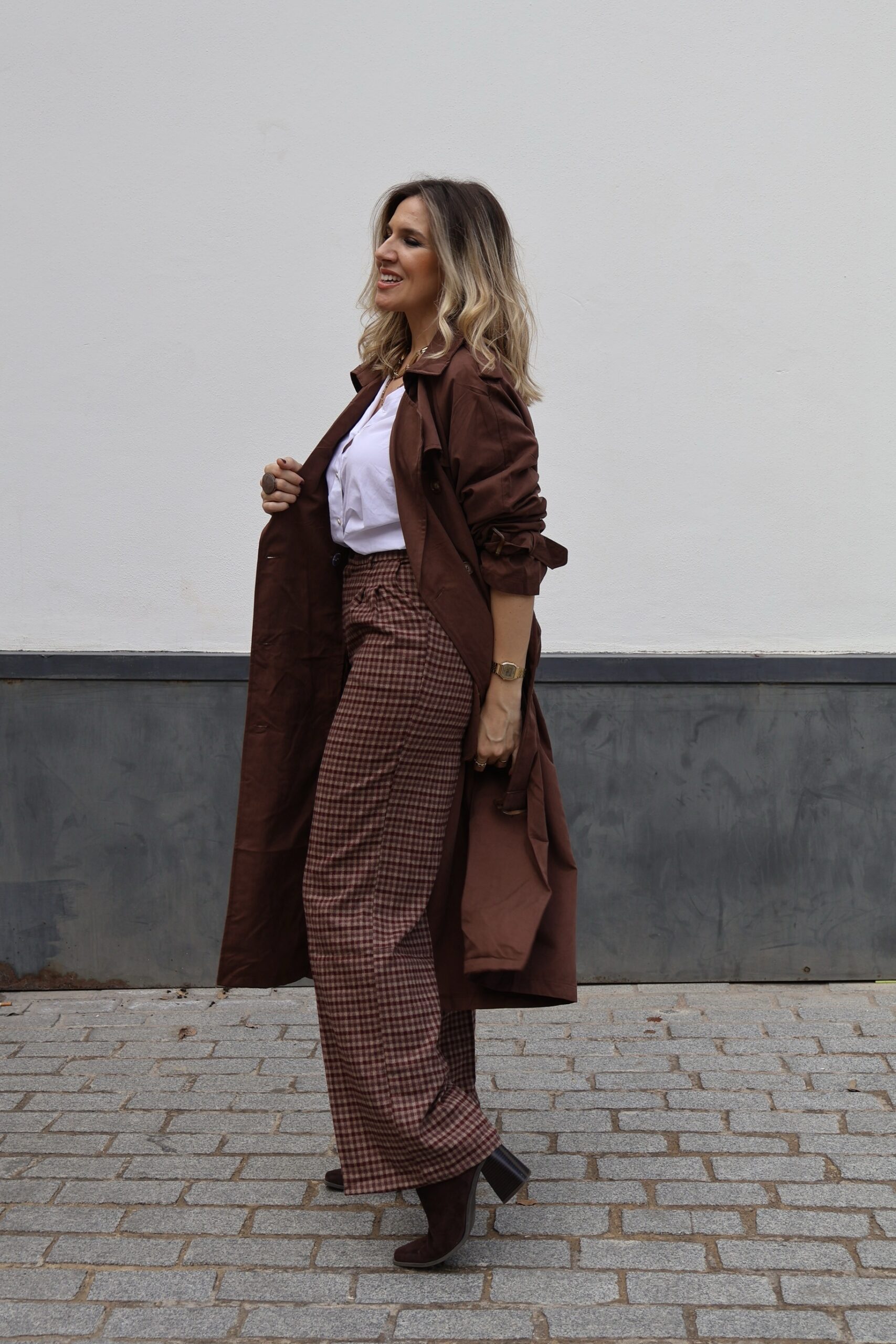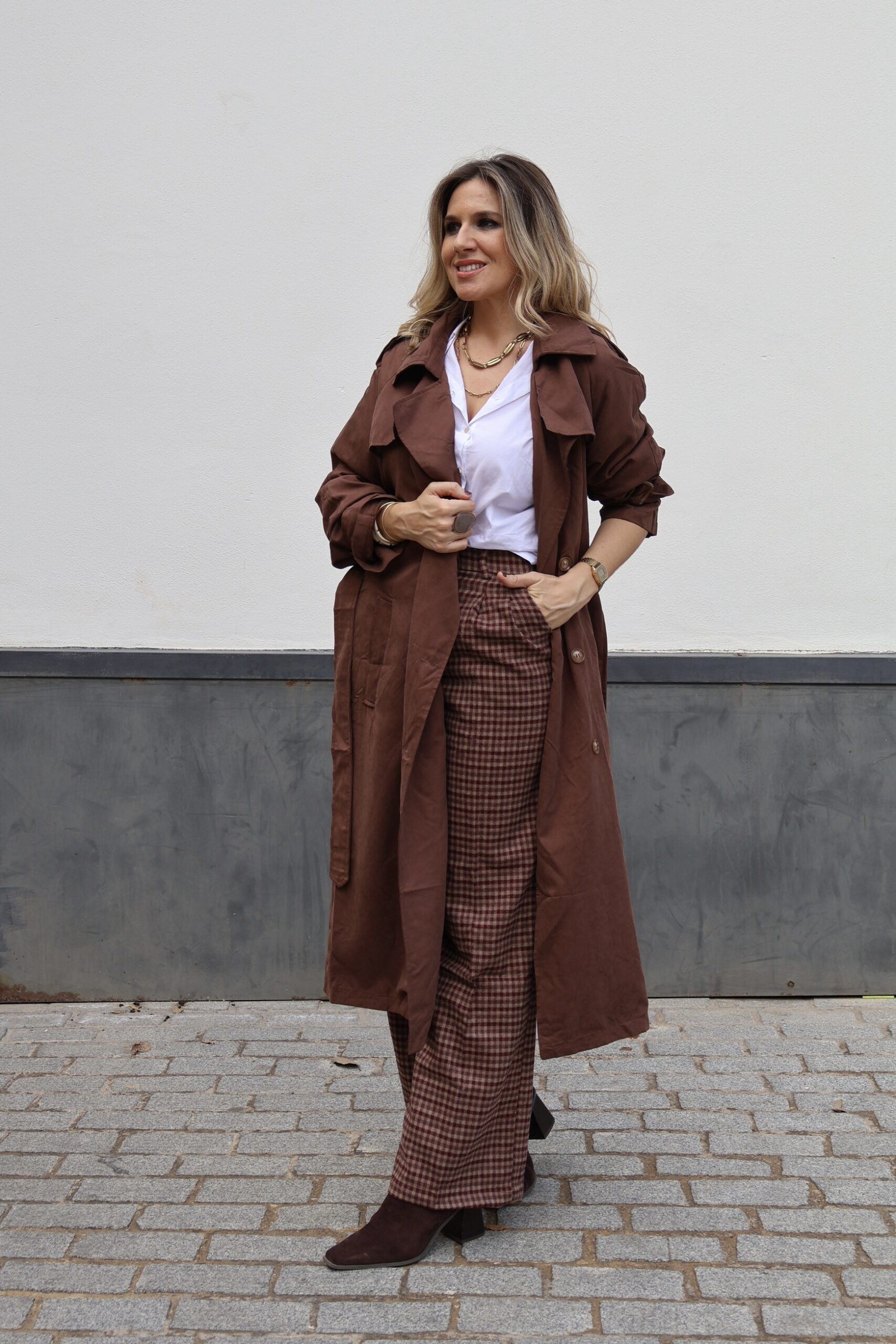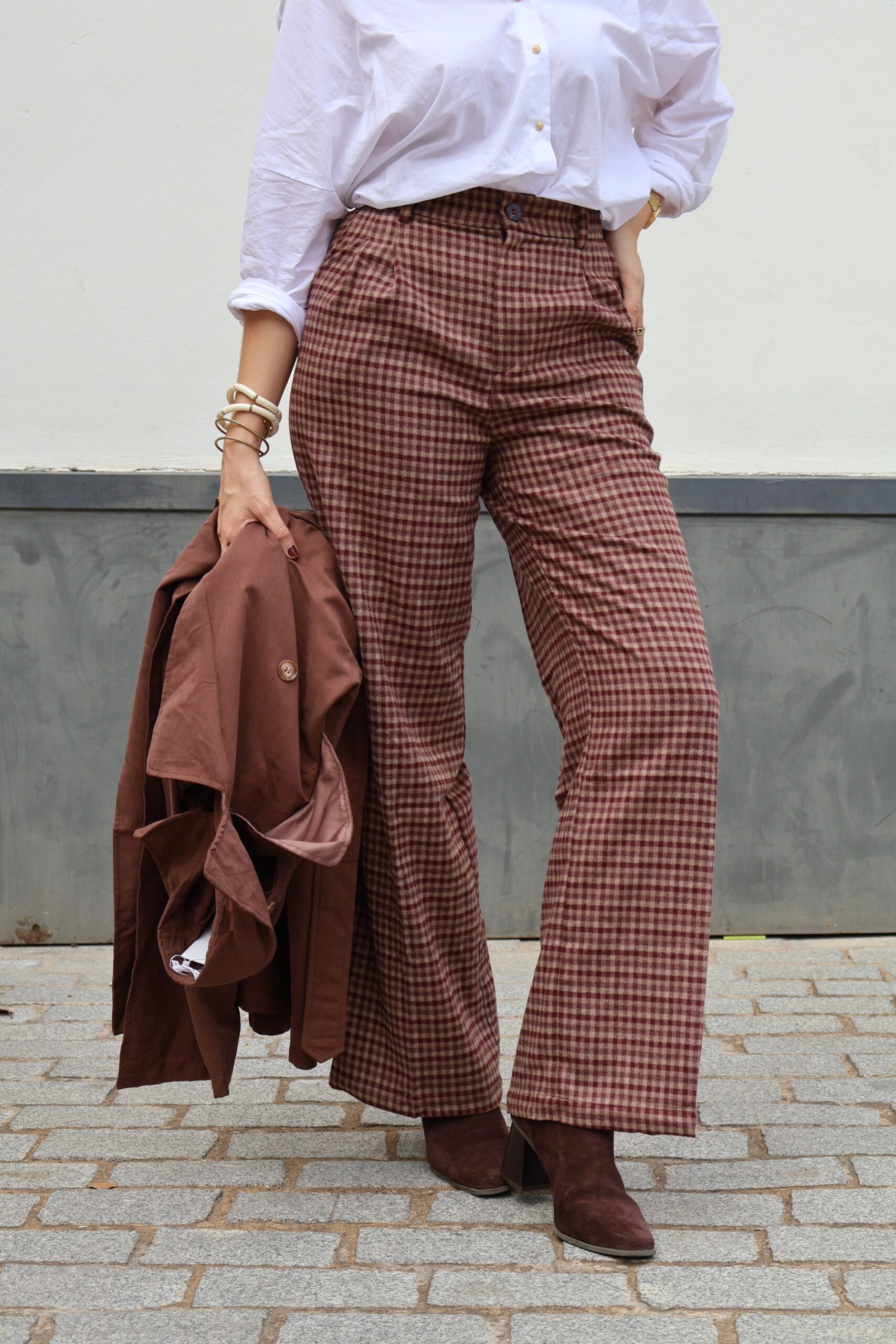 Pantalon vichy burdeos
