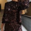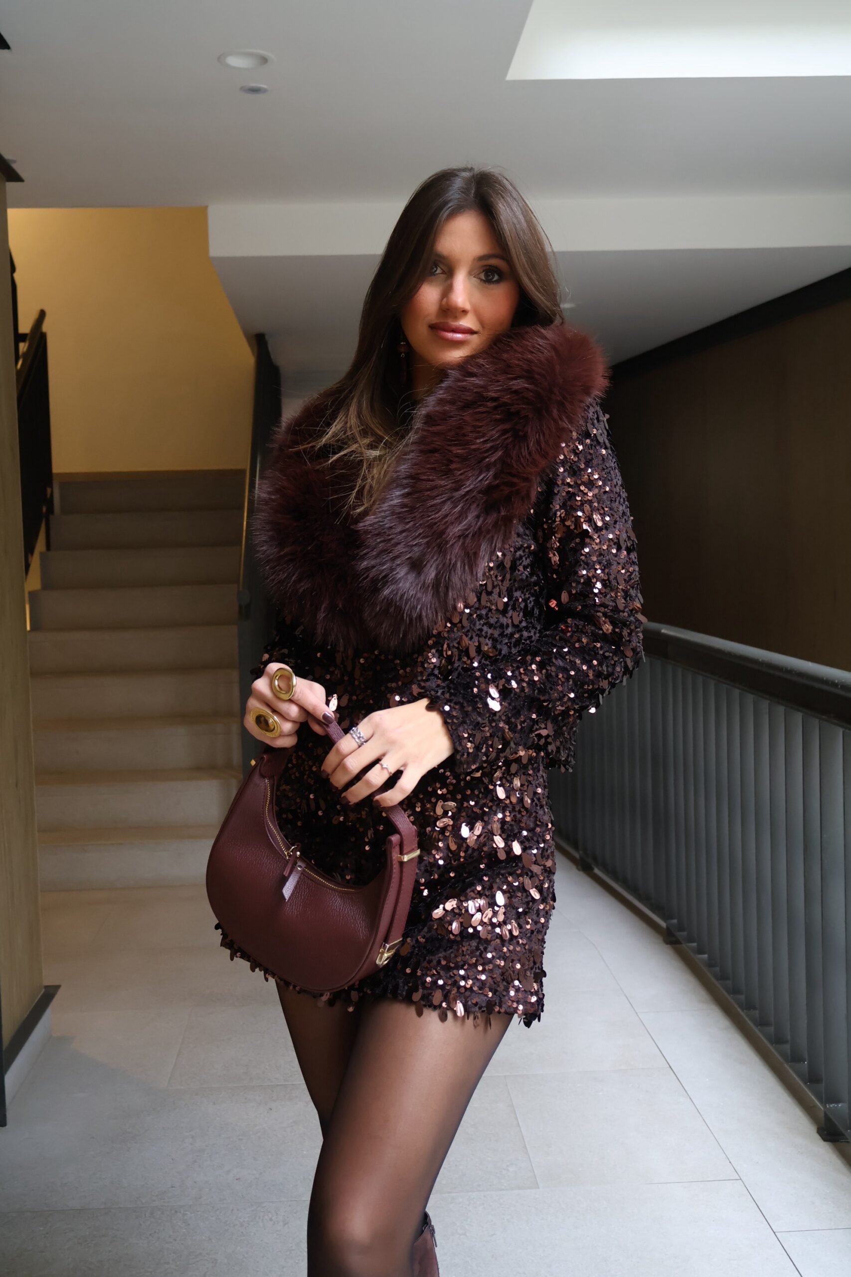 Short marrón de lentejuelas. Cierre lateral con cremallera. Con interior forrado.